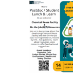 The Lab community is invited to learn more about the Chemical Reuse Facility (in development) and on-the-job training (OJT) in a hybrid Lunch & Learn session taking place August 14th at 12:30 in B91 R310, and online. Grab some pizza and drinks, take the opportunity to ask questions, and give feedback to the EHS Lab […]